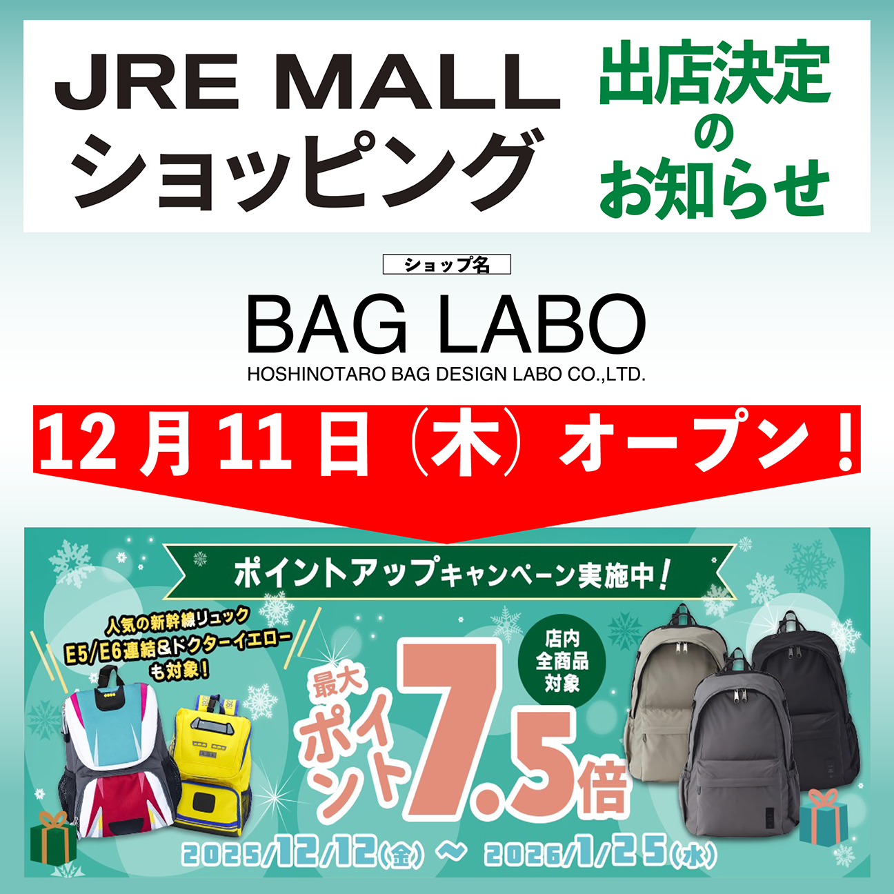 JRE MALLにて弊社直営ショップをオープンさせて頂くことになりました。